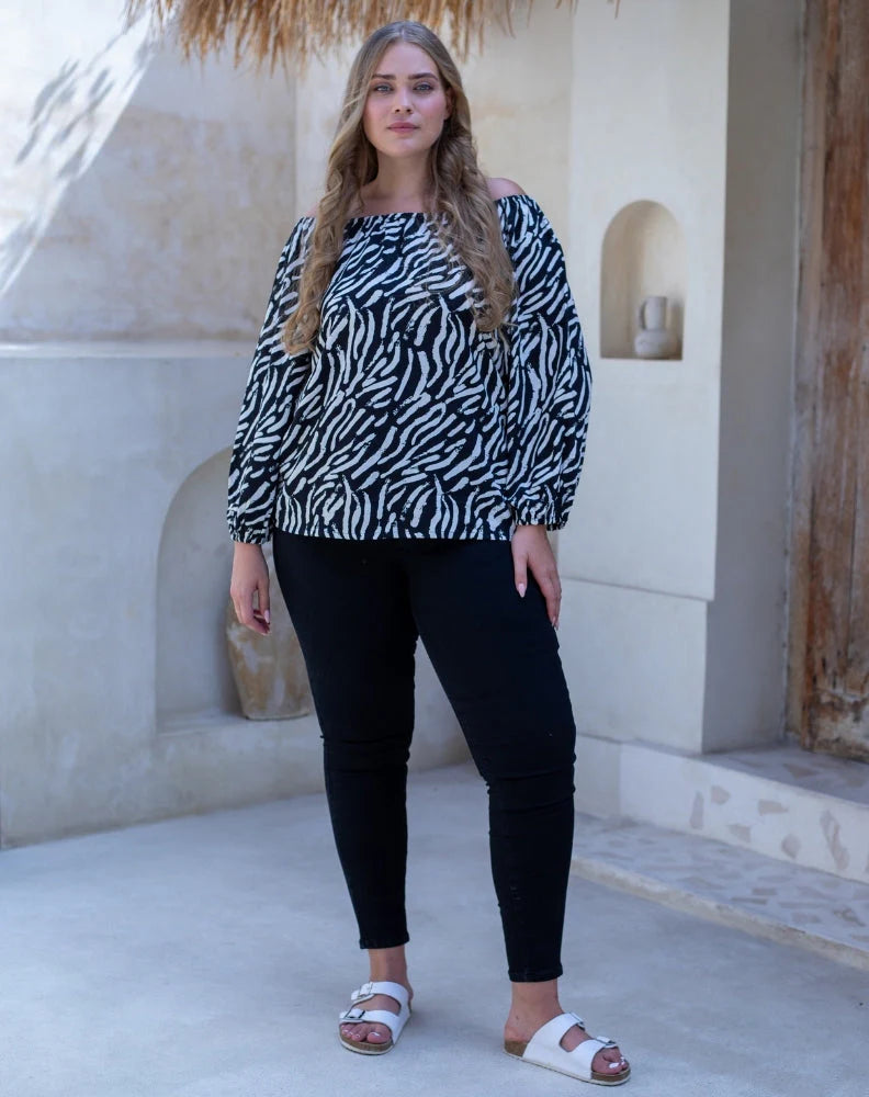 Discover the Byron Top, a versatile blouse with an adaptable on-or-off-the-shoulder design, crafted from breathable rayon. The elasticated neckline offers comfort and ease, while the elegant drape suits any occasion. Style it with denim for an effortlessly chic look that transitions seamlessly from day to evening.