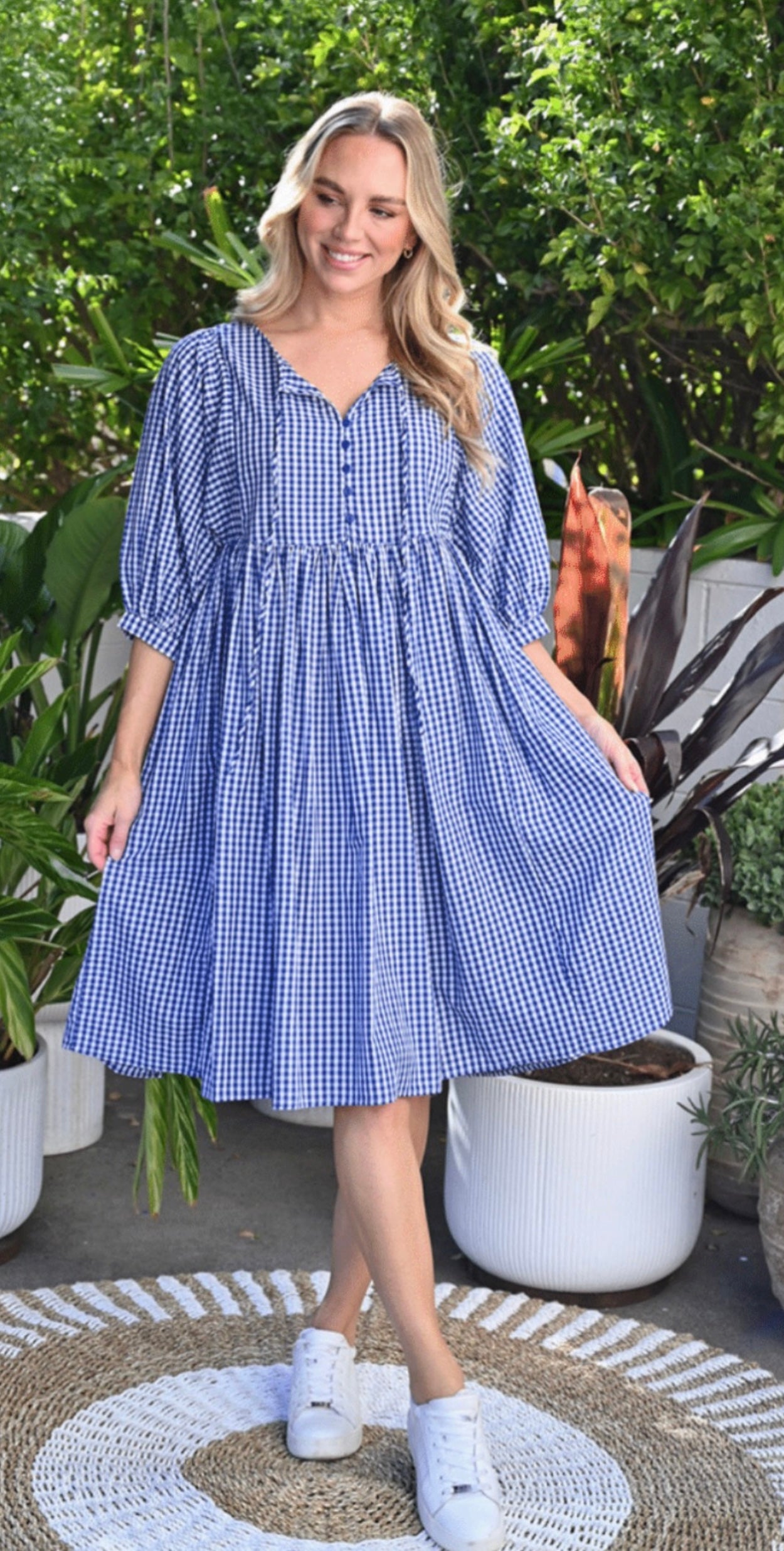 combines a floaty, relaxed style with breathable cotton fabrication, making it an ideal choice for casual outings. Its timeless gingham design adds a touch of effortless charm to your everyday wardrobe.