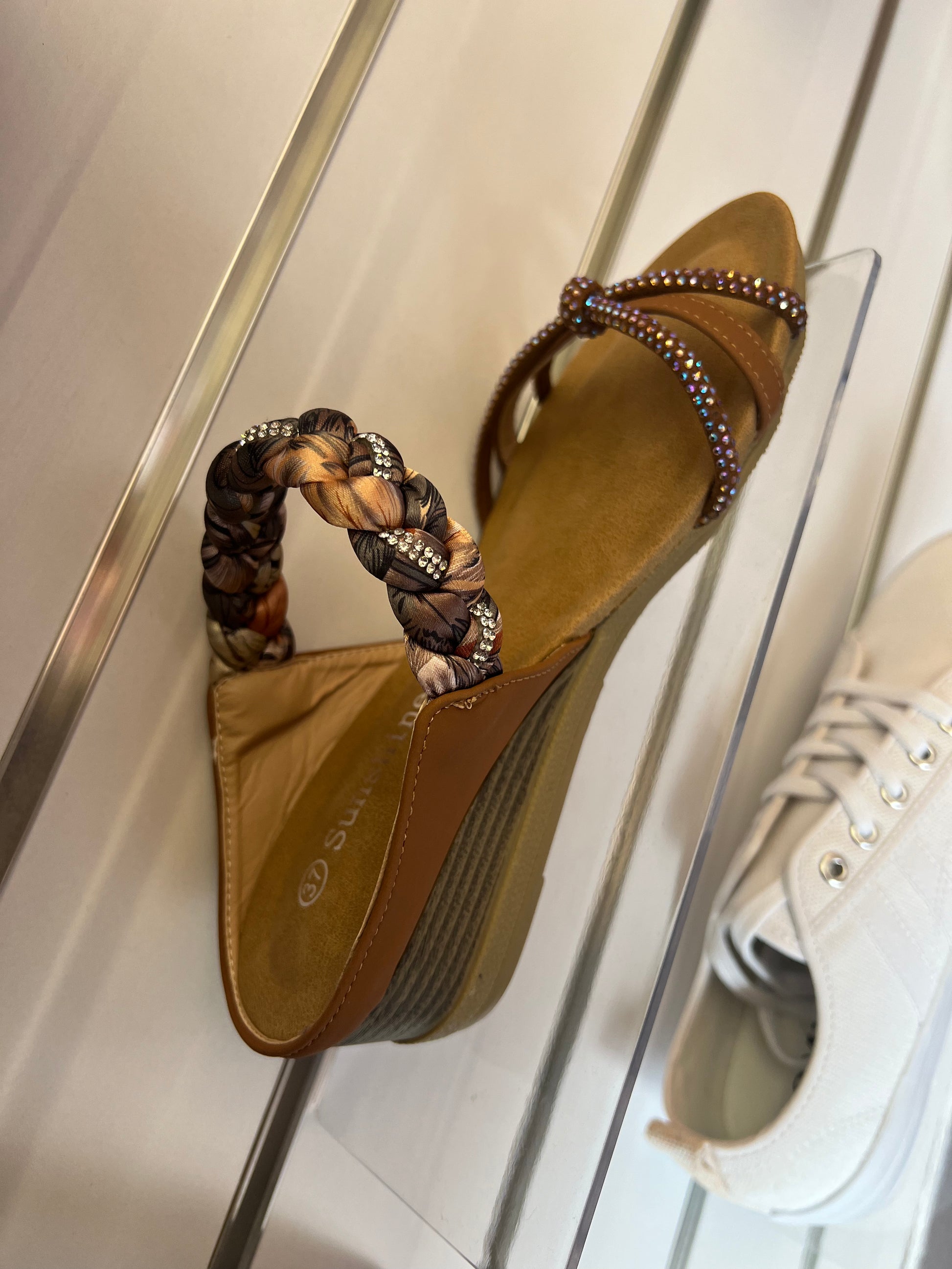 Add some bling to your feet with our June wedges!! They come in black and camel. Stylish yet comfortable always a crowd favourite.