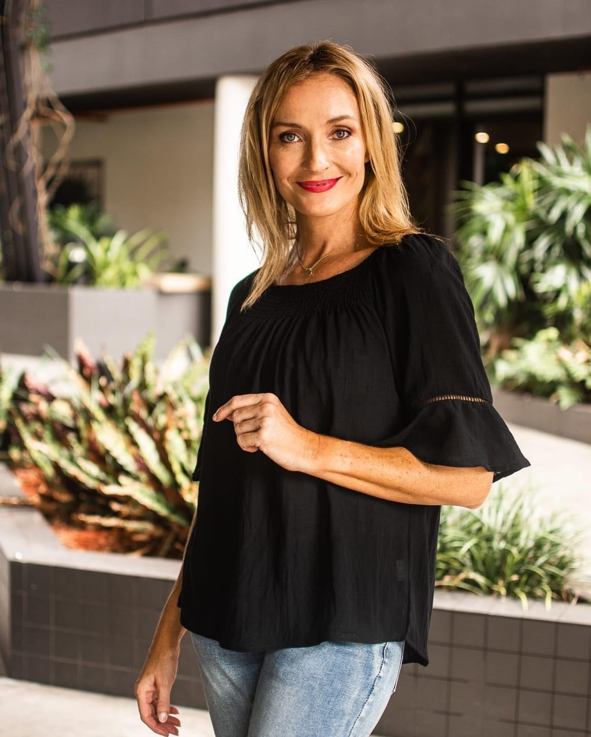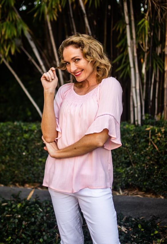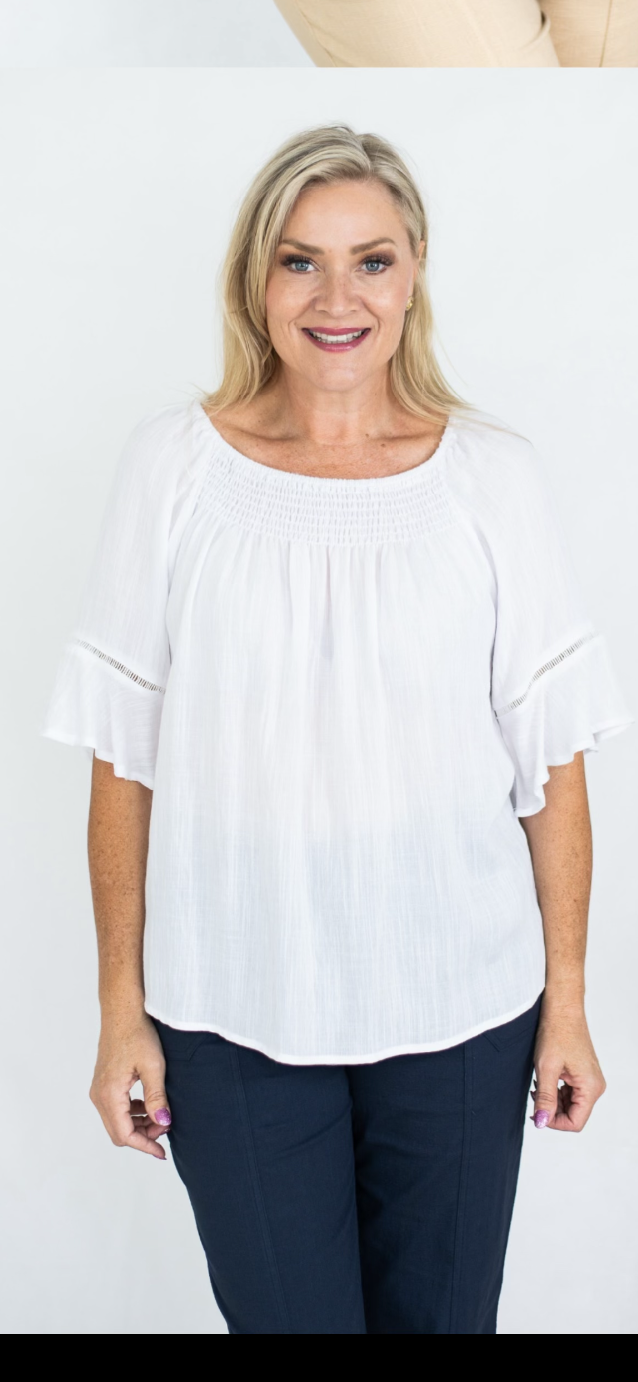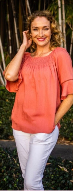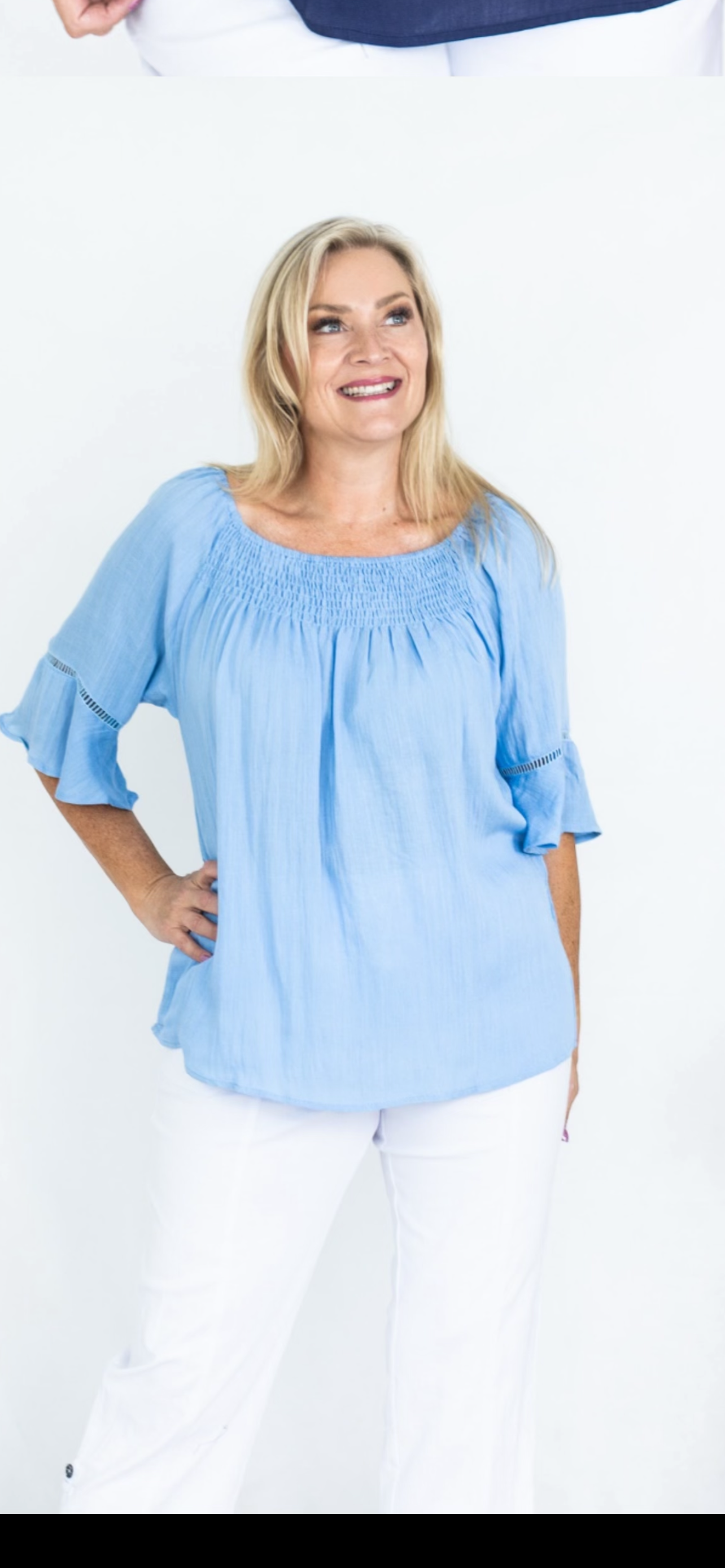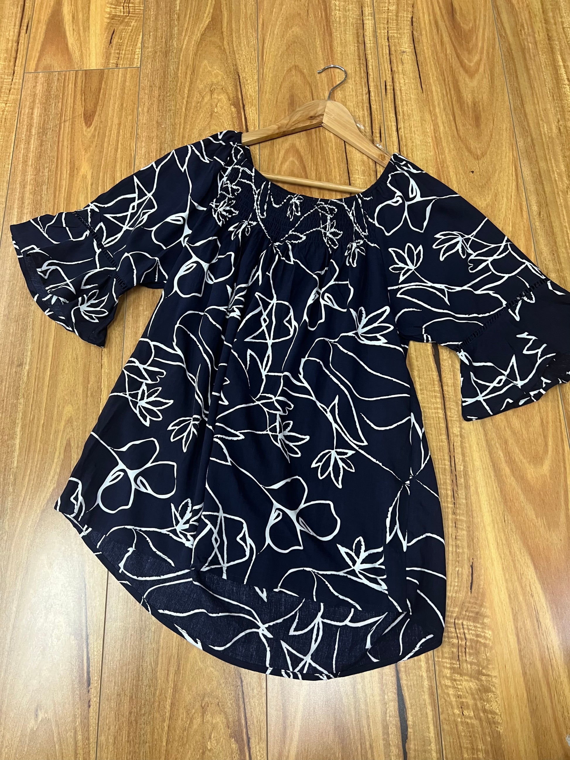 Our Maci rayon top is an absolute best seller. It’s generous sizing is a huge selling point and it’s light weight and style suits so many body types it makes this top a must have for every day wear or smart casual, She comes with ruched collar 3/4 sleeve with frills on the end she’s flowy and super perfect for our hot 🔥 spring, summers and some winters 😂 a staple piece for your collections.