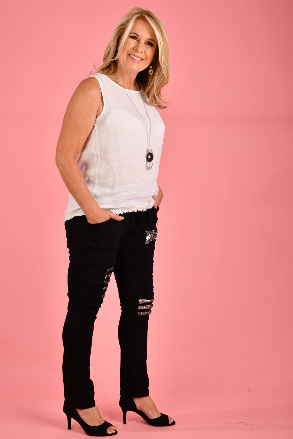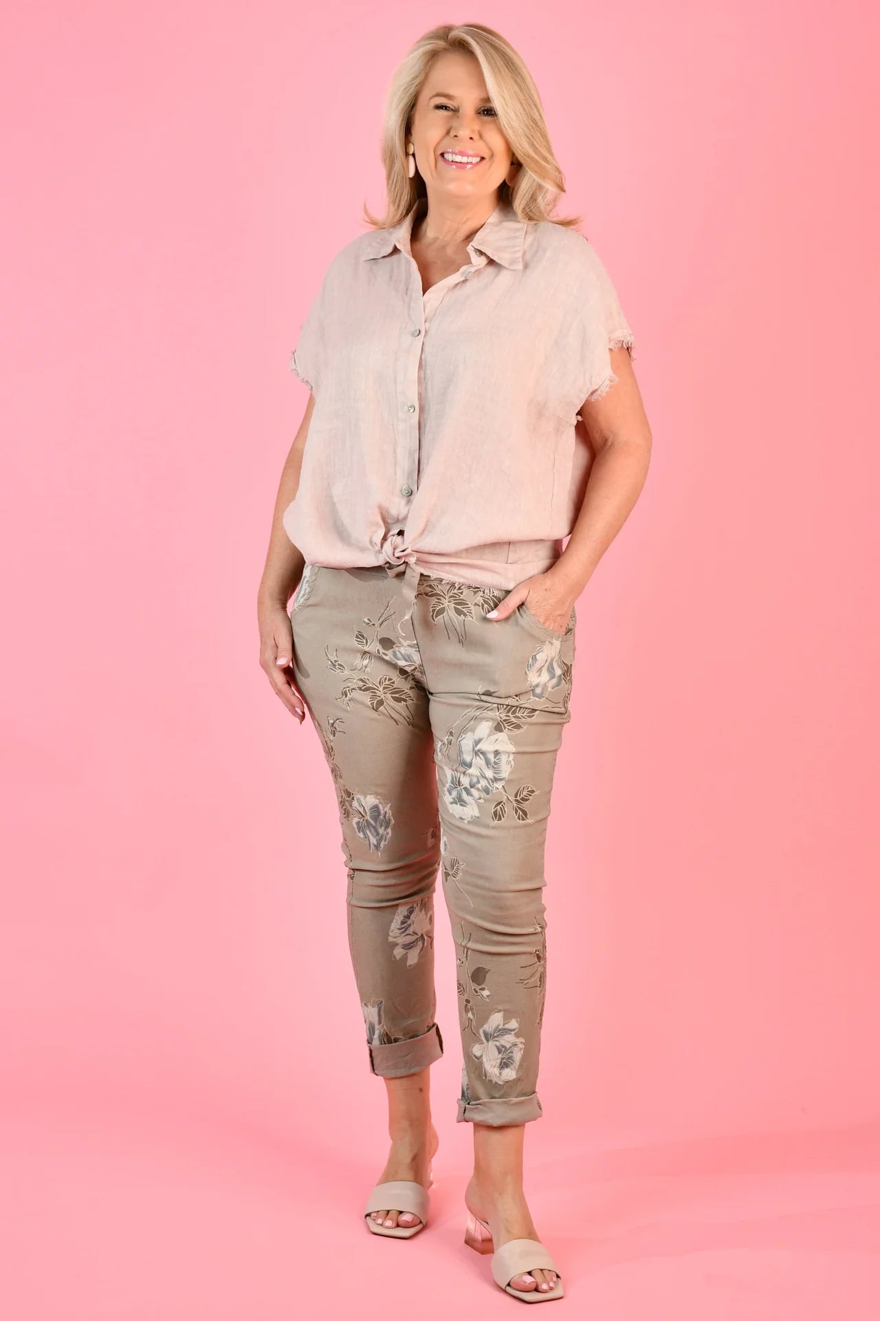 These pants are crafted from a comfy, stretchy fabric designed to complement multiple body types.