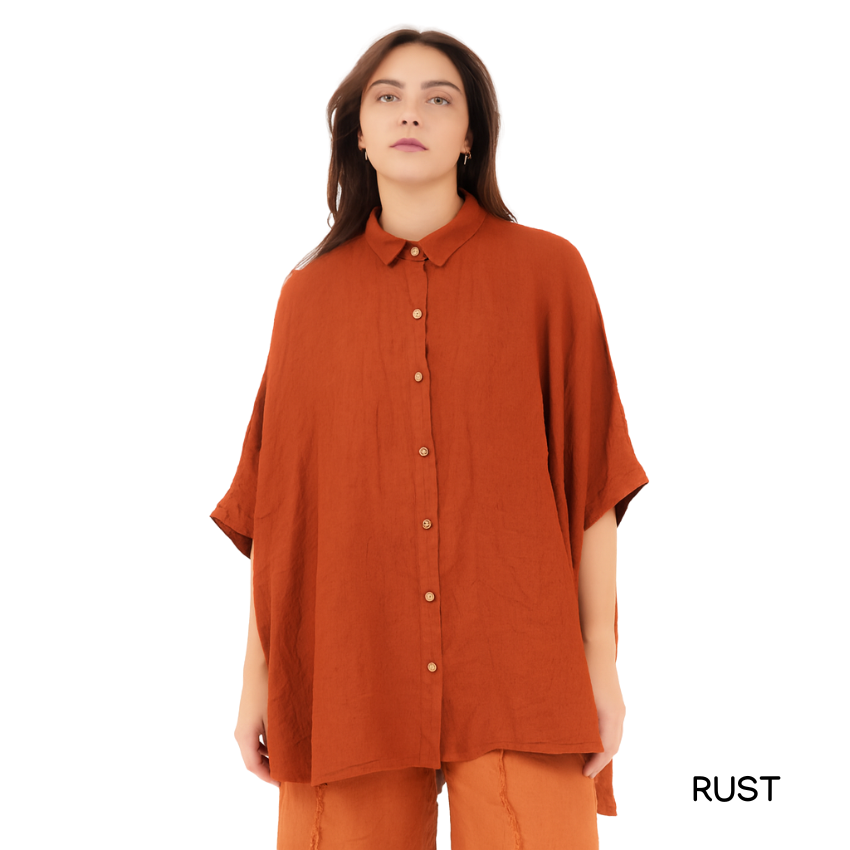 The Marina Linen Top brings relaxed sophistication to your wardrobe. Crafted from 100% breathable Italian linen, it skims gracefully over the body with a relaxed, flattering fit. Available in classic navy or crisp white, this versatile piece pairs beautifully with tailored pants for refined charm or with jeans for effortless casual style. Made in Italy, it combines comfort, elegance, and everyday luxury.
