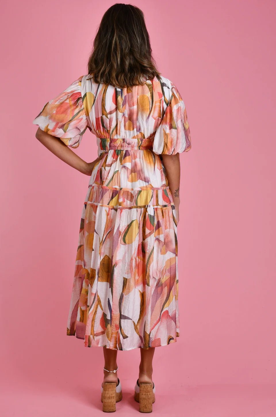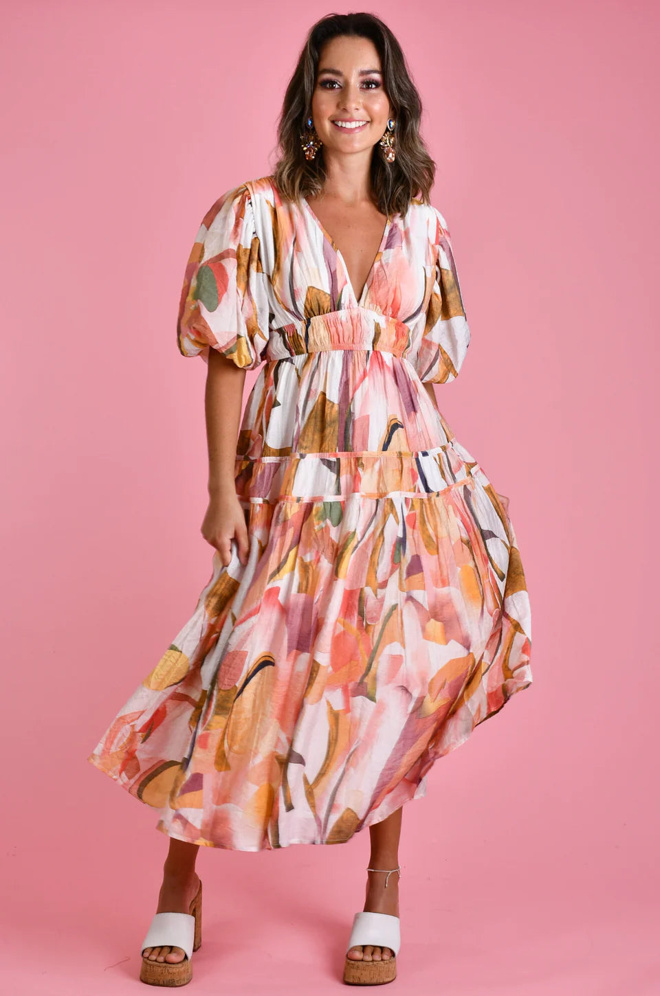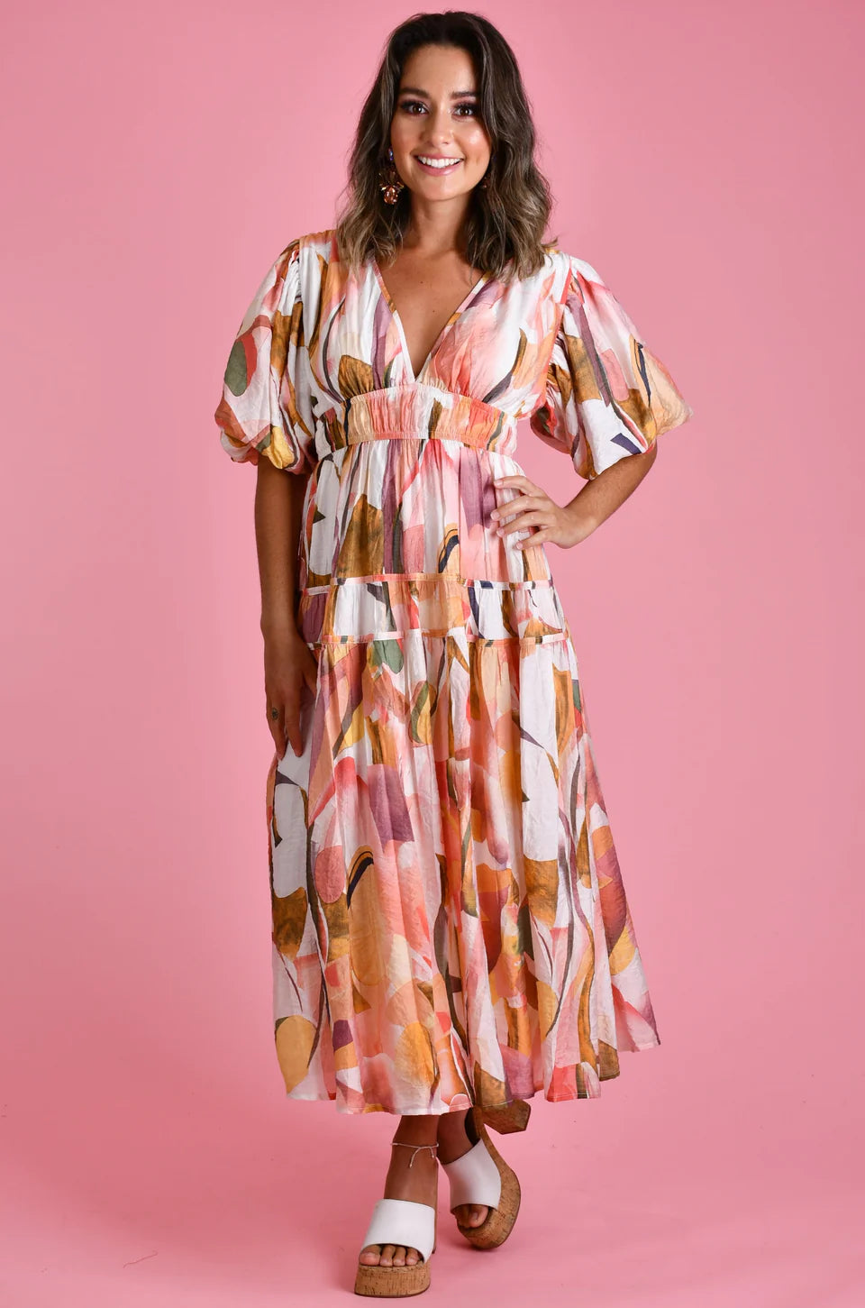 Step into a fairytale with our Pandora Dress, featuring the dreamy, Soft, Print .